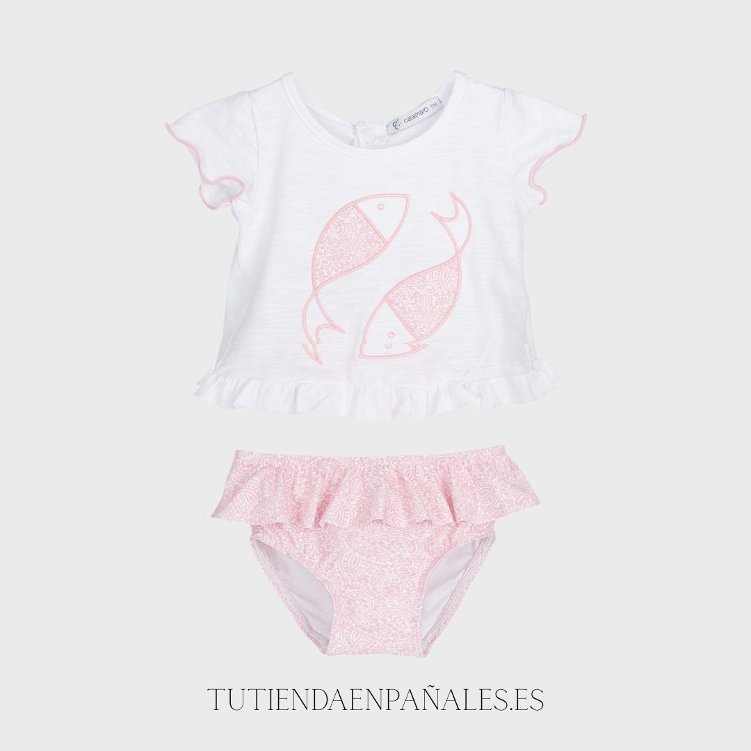 Estilo: Es un conjunto de baño «total look», ideal para quienes buscan que su bebé vaya conjuntada y protegida del sol fuera del agua sin perder el estilo.