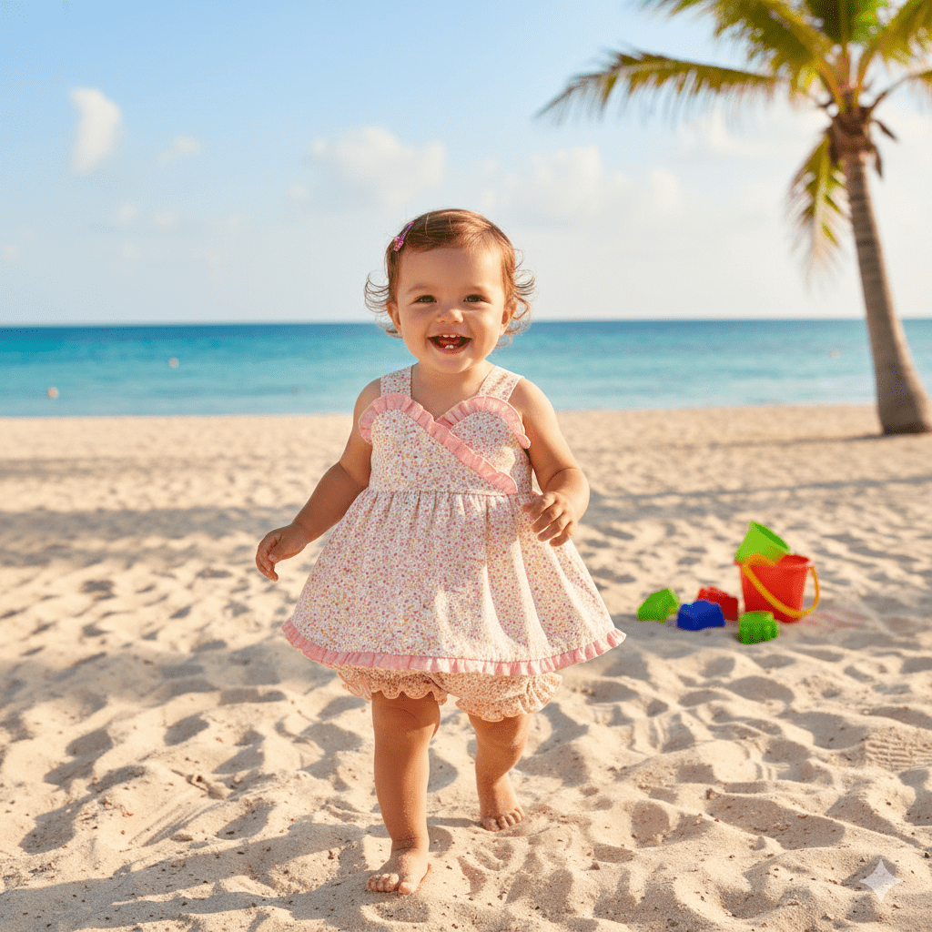 ¡Dale un toque dulce y romántico al armario de tu pequeña! Este conjunto de dos piezas de la marca Calamaro es la elección perfecta para quienes buscan calidad, comodidad y un diseño clásico renovado. Ideal para bebés de 12 a 24 meses, este conjunto está pensado para brillar en los días soleados de primavera y verano.
