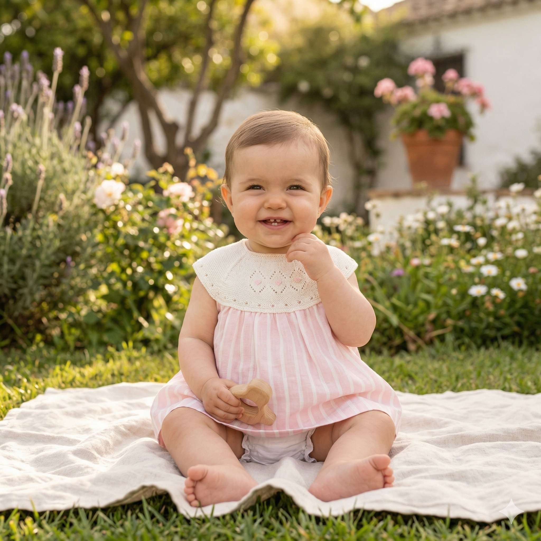 Jesusín cuerpo punto tela con braga bambula LISTAS rosa
