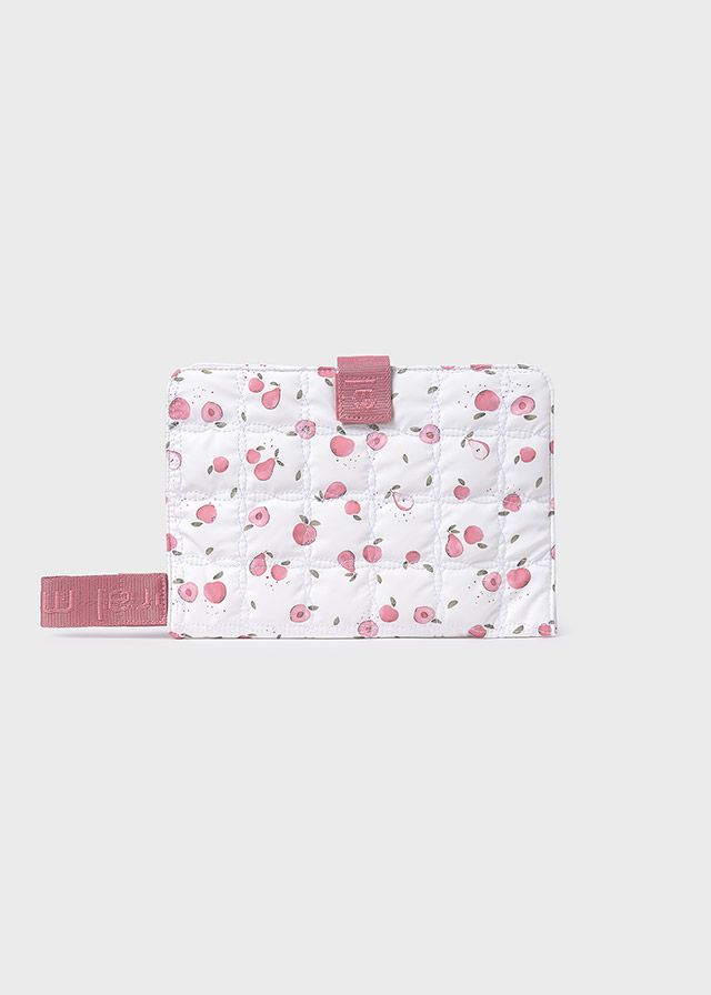 Este neceser es el complemento perfecto para llevar dentro del bolso estampado de frutas, manteniendo todos los elementos esenciales del bebé perfectamente organizados y coordinados.