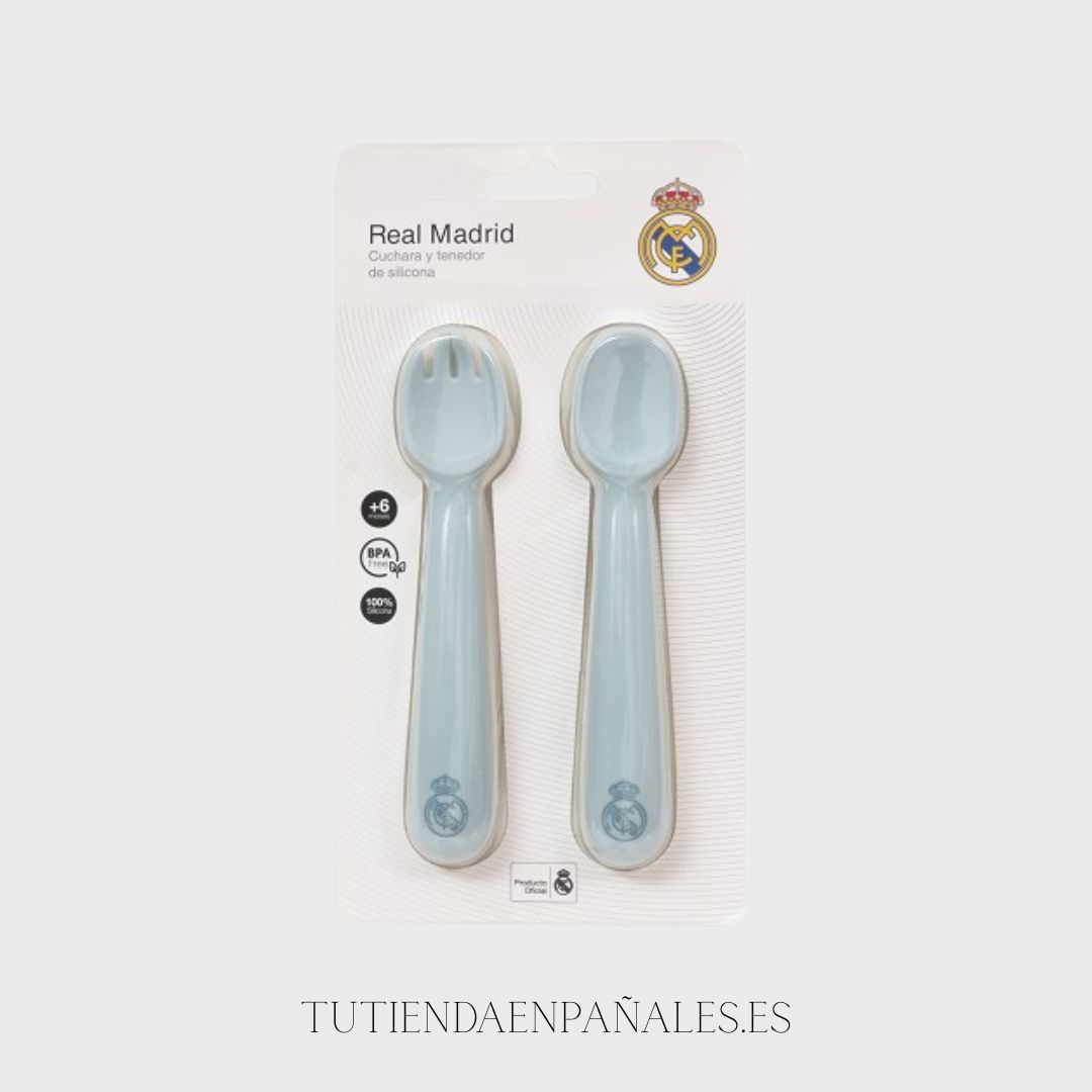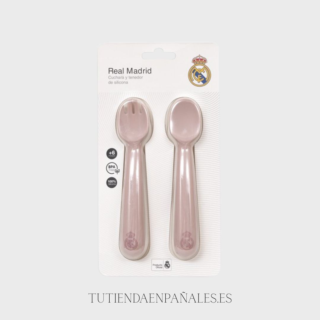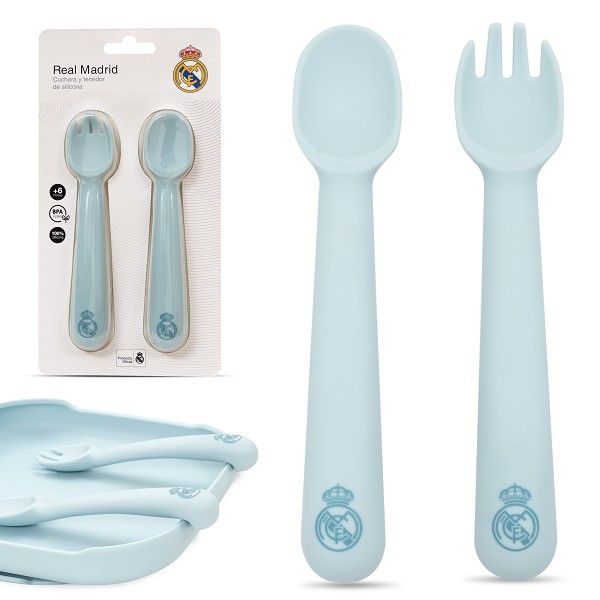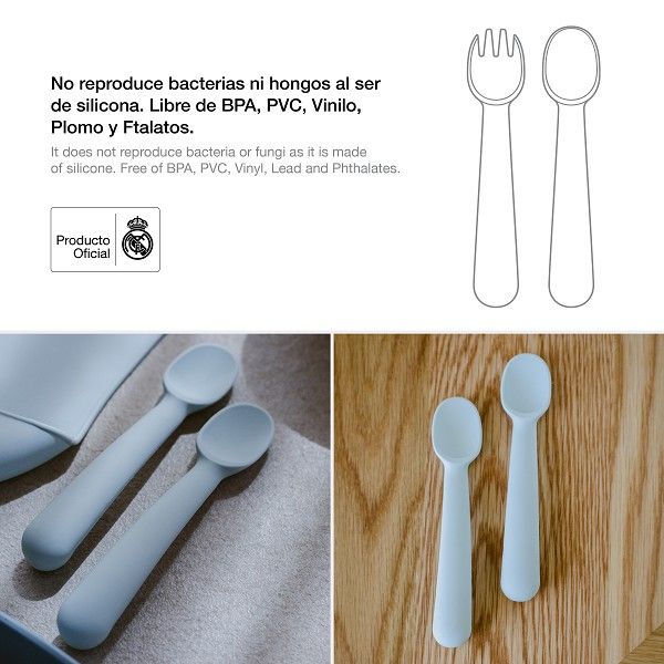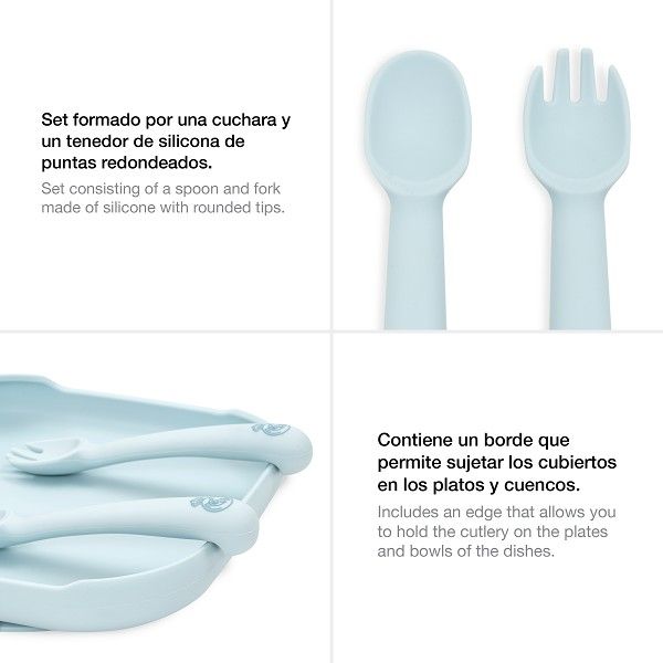 Pack cuchara y tenedor de silicona, presentado en estuche