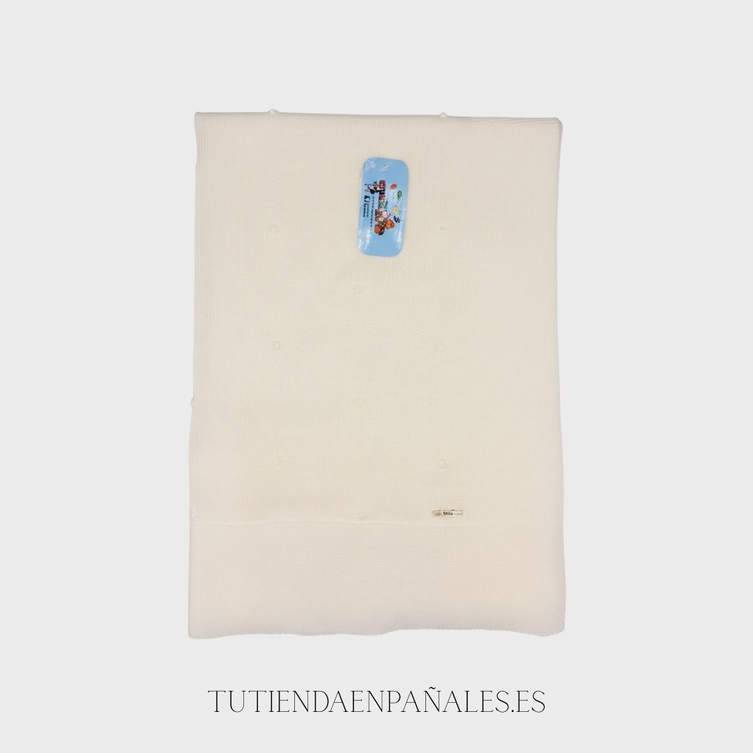 Tejido de hilo: Confeccionada en un punto de hilo suave y ligero, perfecto para mantener la temperatura del bebé sin agobiarlo.