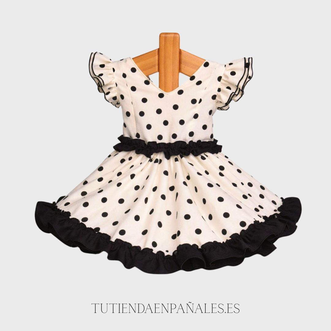 | Palabras Clave (Keywords) | traje de flamenca niña, vestido gitana lunares, moda flamenca infantil, traje flamenca blanco y negro, vestido feria niña 3 años, traje farolillos niña. |